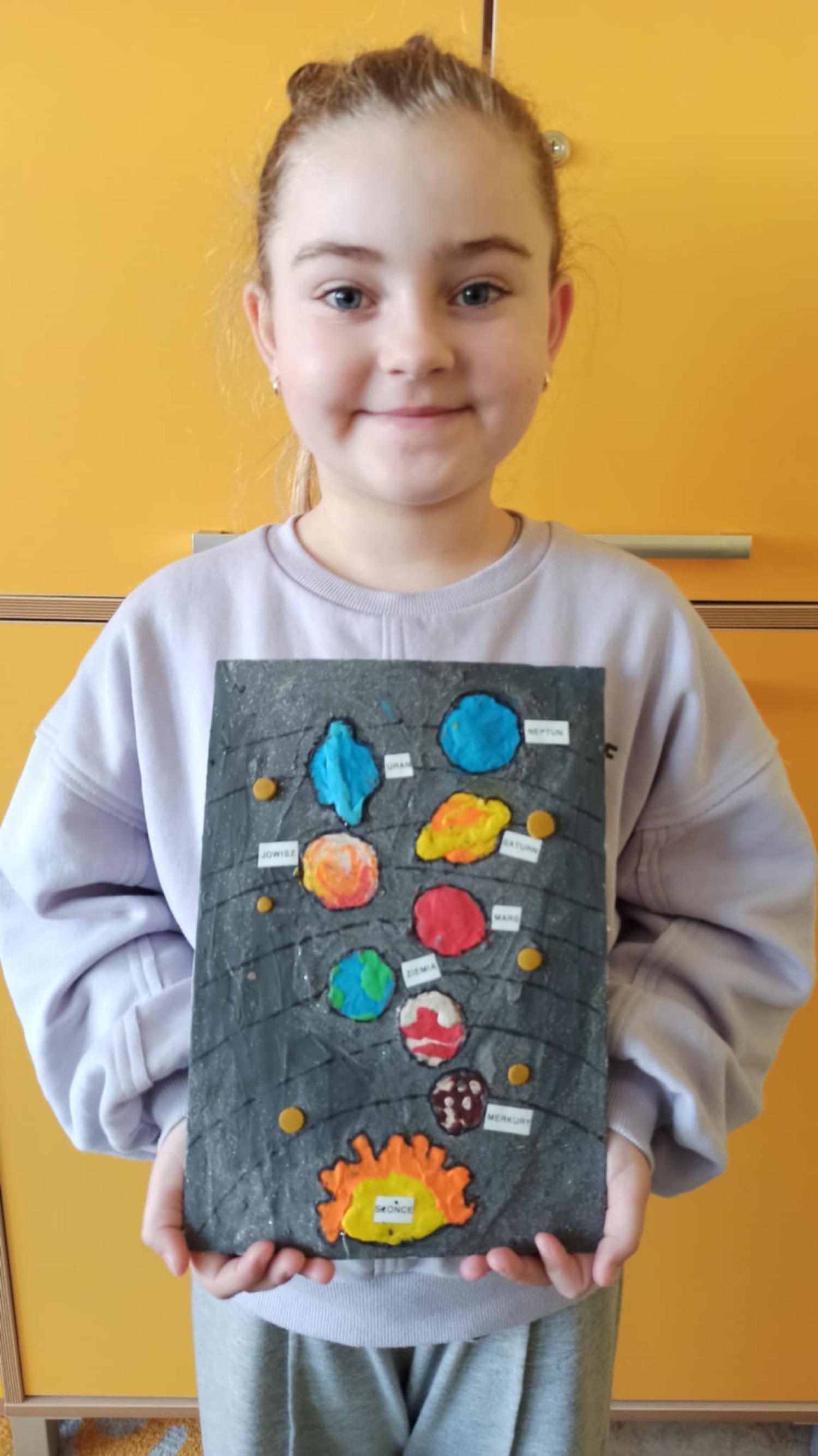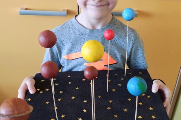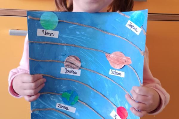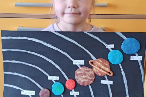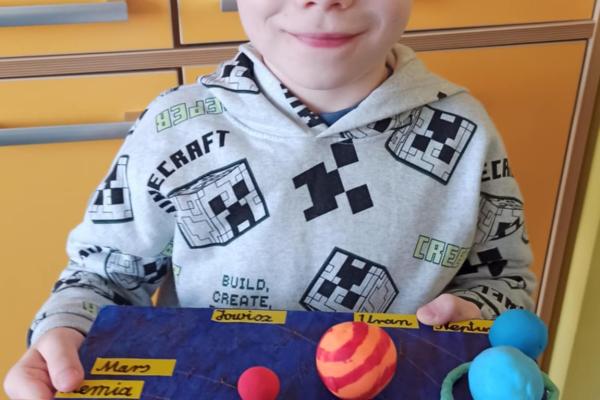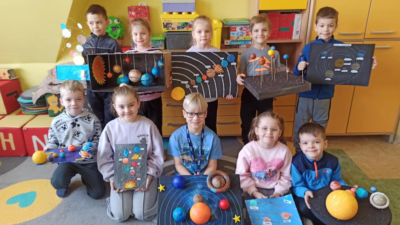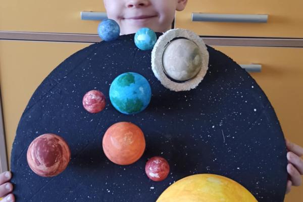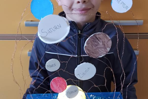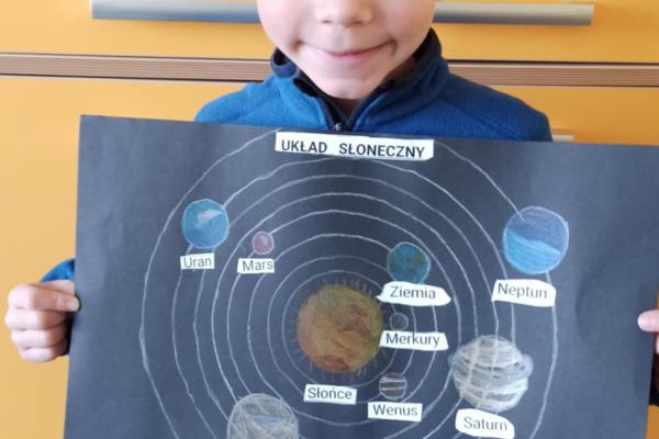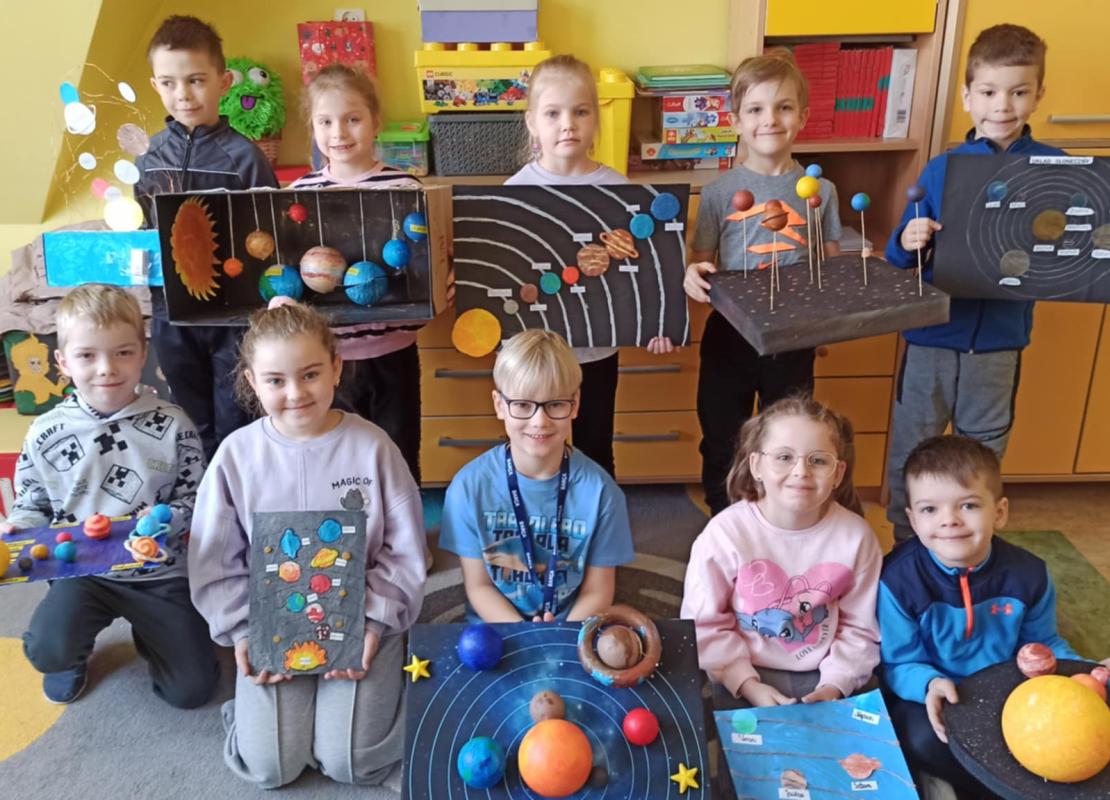 Mali odkrywcy z klasy 1a poznają kosmos Uczniowie klasy 1a wyruszyli w niezwykłą podróż… aż do gwiazd! Podczas zajęć dzieci poznały postać Mikołaja Kopernika oraz dowiedziały się, czym jest Układ Słoneczny i jakie planety krążą wokół Słońca. Pierwszoklasiści z ogromnym zainteresowaniem słuchali ciekawostek o kosmosie, oglądali ilustracje planet oraz rozmawiali o tym, dlaczego odkrycie Kopernika było tak ważne dla świata nauki. Chętni uczniowie podjęli się dodatkowego wyzwania i wykonali własne projekty Układu Słonecznego. Powstały piękne, kolorowe prace, które pokazują nie tylko zdobytą wiedzę, ale także kreatywność, zaangażowanie i pasję do odkrywania świata. Brawo klasa 1a! Jesteśmy dumni z Waszej ciekawości i aktywności!