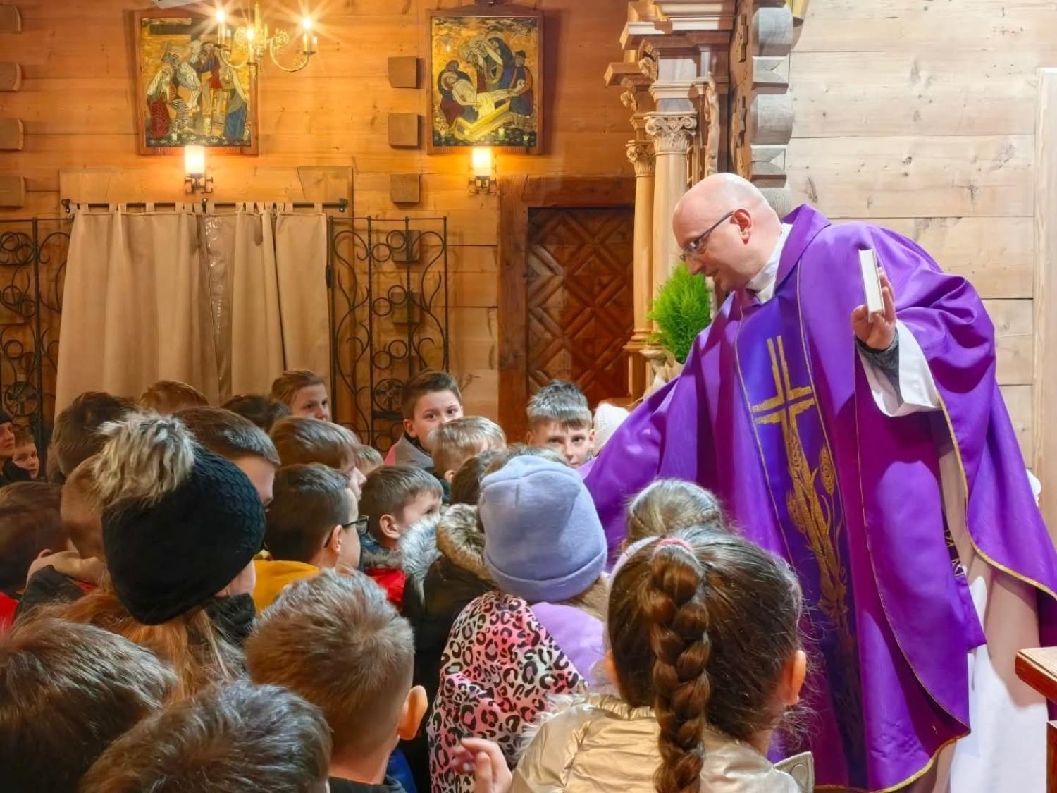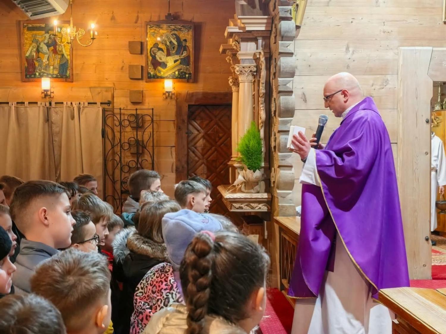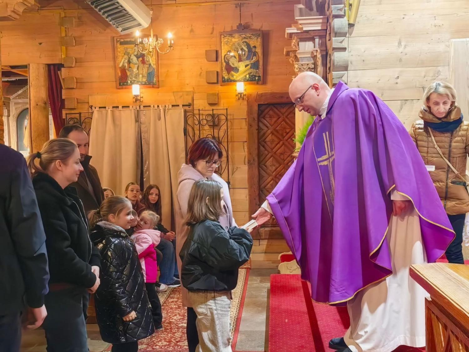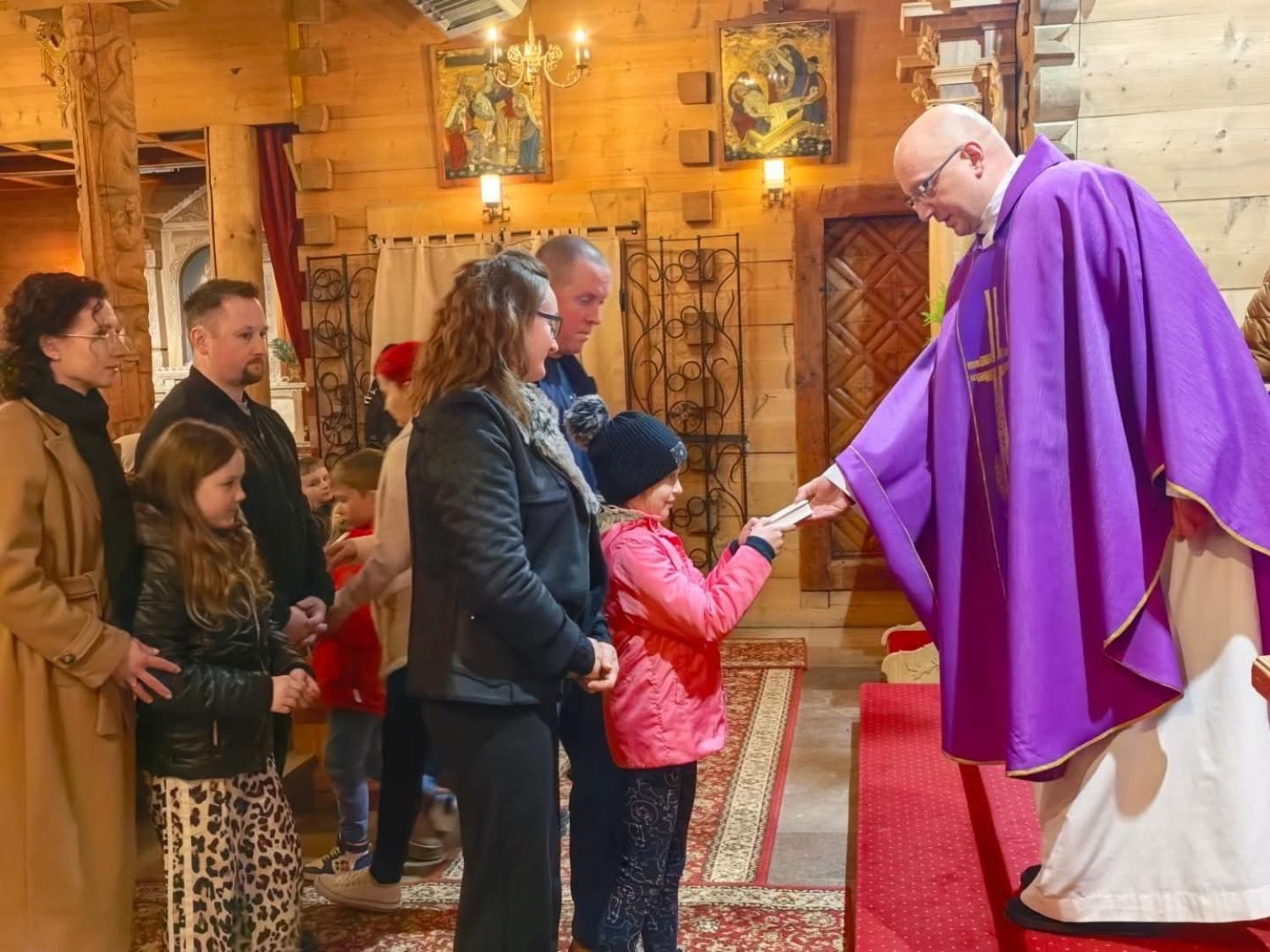 W dniu 27.02.2026r. w drugi piątek Wielkiego Postu miała miejsce tradycyjna Droga Krzyżowa, którą tym razem poprowadziły dzieci pierwszokomunijne wraz z rodzicami.