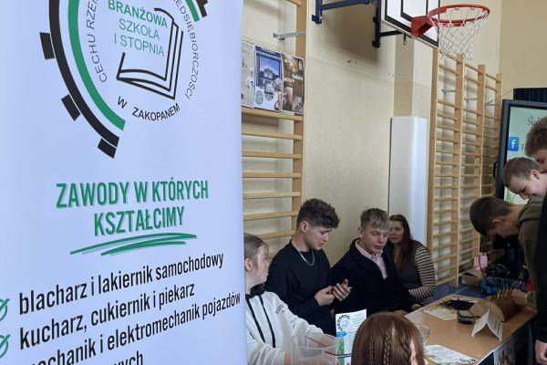 Uczniowie klas siódmych i ósmych z gminy Bukowina Tatrzańska oraz z sąsiednich szkół wzięli udział w IV Targach Edukacyjnych "Kompas Kariery", które odbyły się dziś w Leśnicy Groniu pod patronatem Wójta Gminy Bukowina Tatrzańska. Wydarzenie zgromadziło przedstawicieli szkół ponadpodstawowych z powiatu nowotarskiego i tatrzańskiego, prezentujących swoją ofertę edukacyjną na nadchodzący rok szkolny. Podczas targów zaprezentowały się m.in. . licea ogólnokształcące, technika oraz szkoły branżowe I stopnia. Uczniowie mogli zapoznać się z: profilami klas licealnych kierunkami kształcenia w technikach zawodami oferowanymi przez szkoły branżowe (m.in. kucharz, mechanik pojazdów samochodowych, fryzjer, stolarz, sprzedawca, klasy wielozawodowe). Przedstawiciele szkół omawiali wymagania rekrutacyjne, specyfikę nauki w poszczególnych typach szkół oraz możliwości dalszego kształcenia i rozwoju zawodowego.