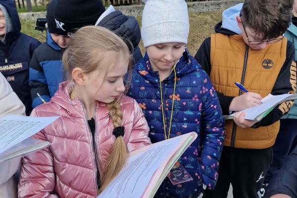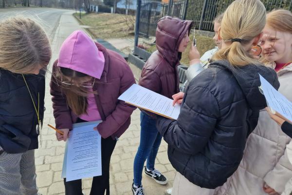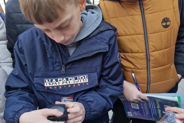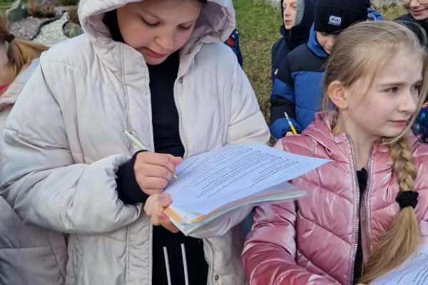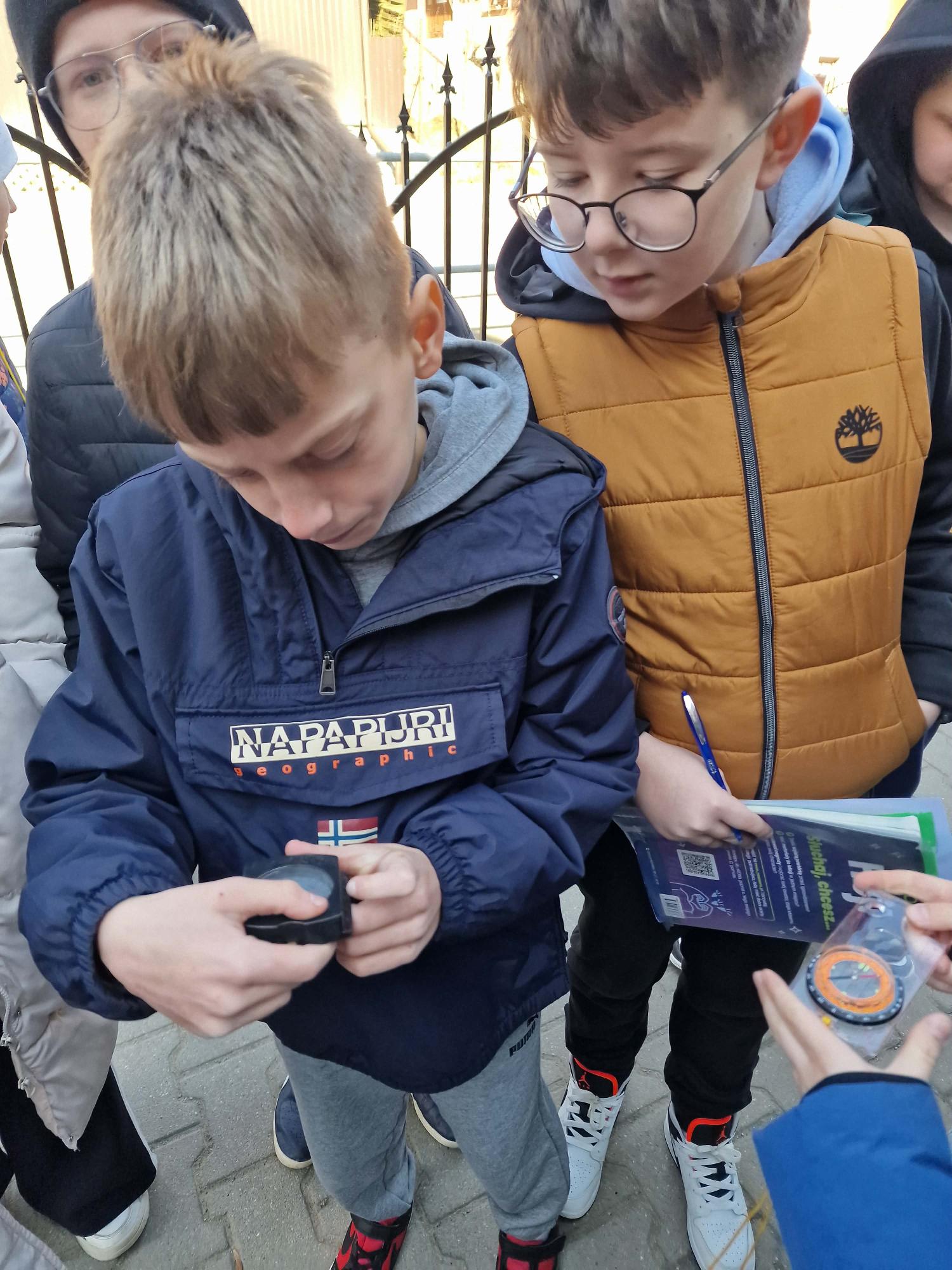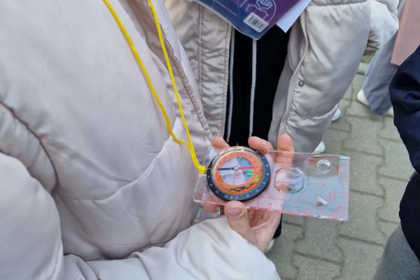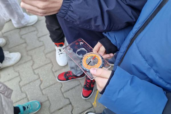 „Ćwiczymy orientowanie się w terenie” Lekcja przyrody Klasa IVa uczestniczyła w zajęciach terenowych poświęconych orientowaniu się w terenie. Uczniowie uczyli się korzystać z kompasu, rozpoznawać kierunki świata oraz odczytywać proste mapy. W trakcie ćwiczeń wyznaczali trasę marszu i odnajdywali wskazane punkty w terenie. Zajęcia pozwoliły utrwalić umiejętność orientacji oraz współpracy w grupie.