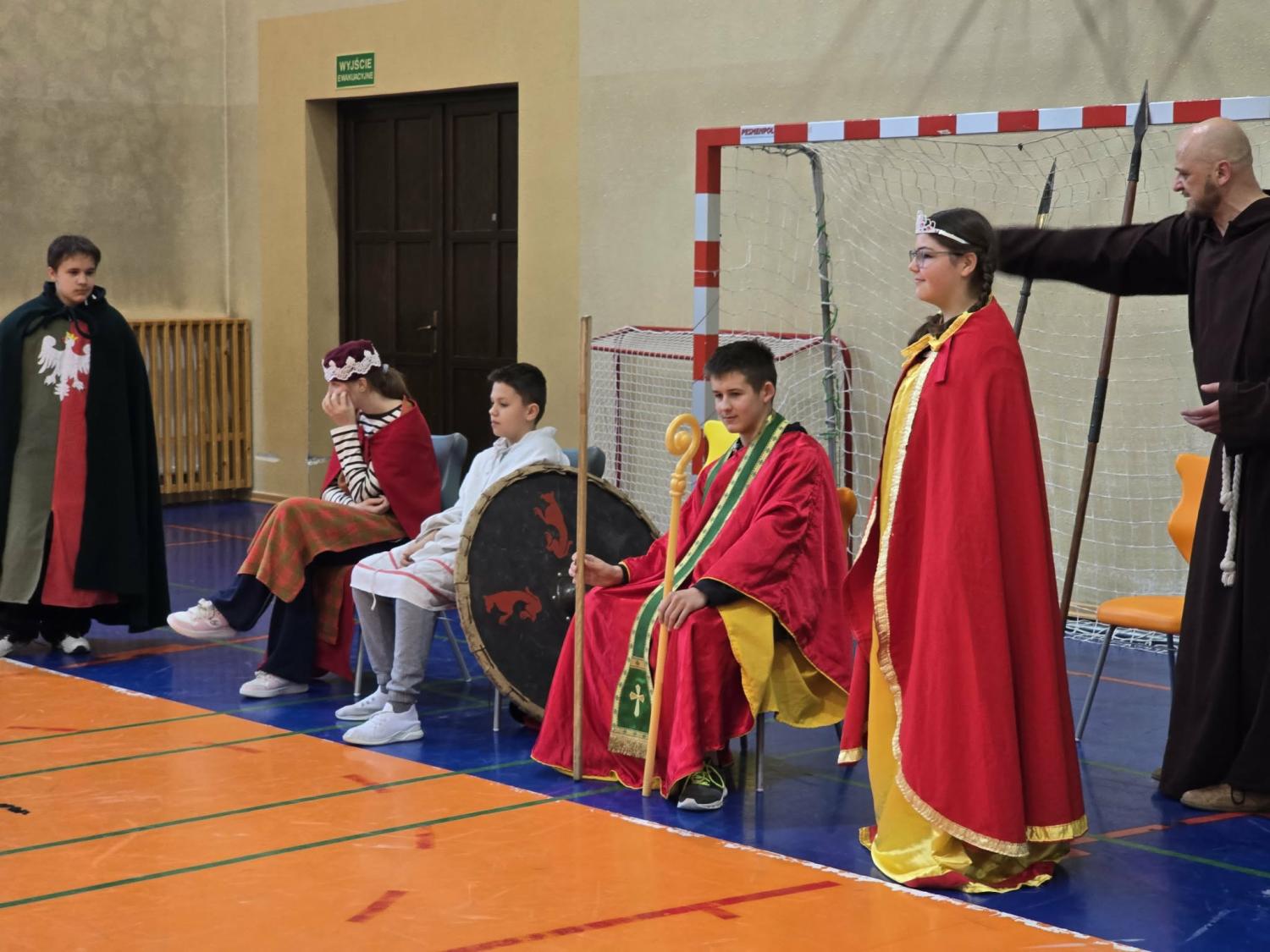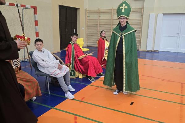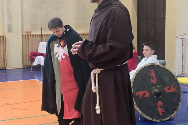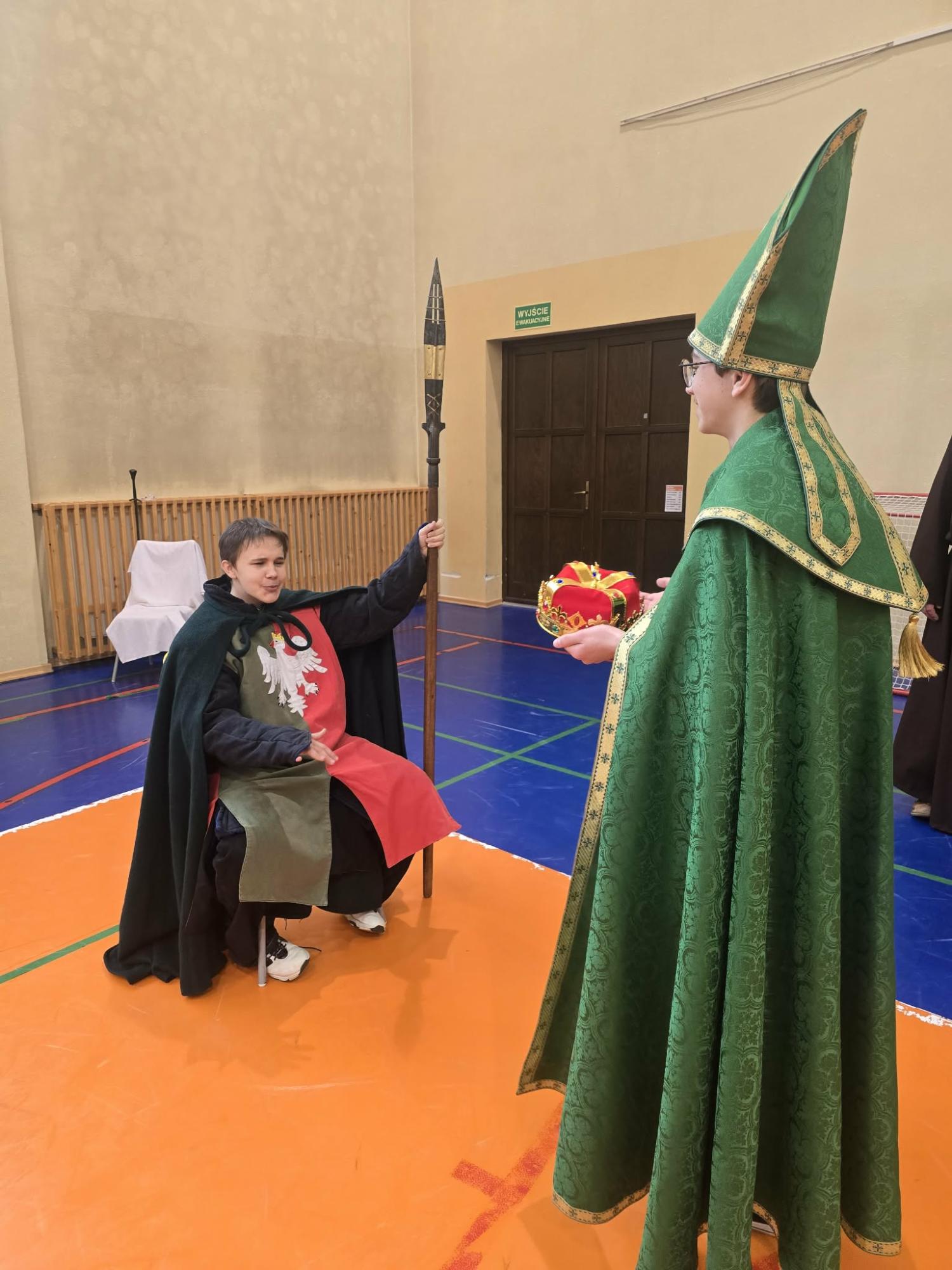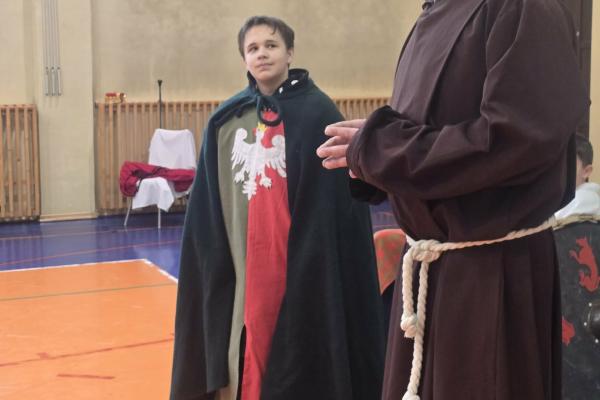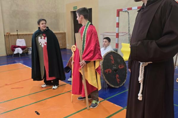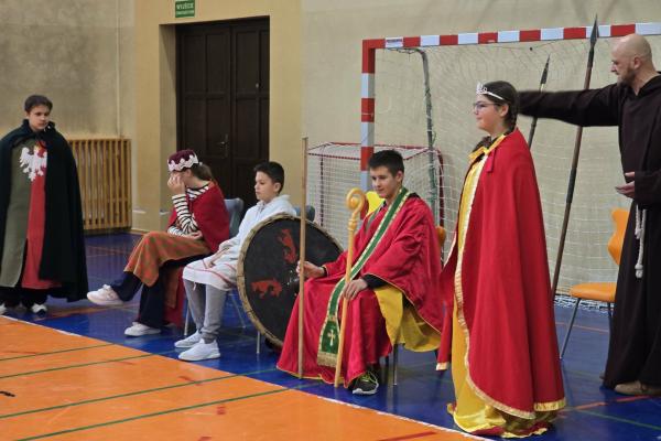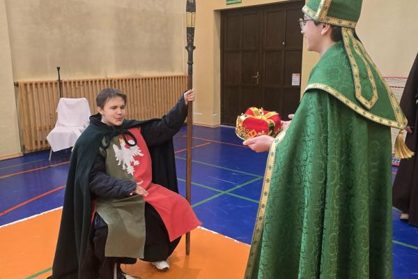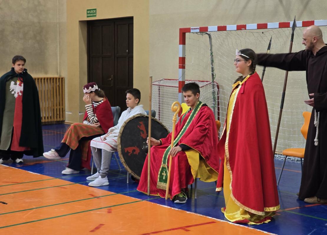 Żywa lekcja historii ukazywała najważniejsze wydarzenia z początków państwa polskiego w formie krótkich żywych scenek. Kulminacyjnymi momentami był Chrzest Mieszka I oraz koronacja Bolesława Chrobrego. Lekcja miała charakter edukacyjny, ale także angażujący - zawierała dialogi, emocje i elementy odgrywania ról. Dzięki temu uczniowie mogli lepiej zrozumieć rolę wydarzeń o doniosłym znaczeniu w historii naszego kraju. Dzisiejsza lekcja historii okazała się ciekawa, a nawet zabawna.