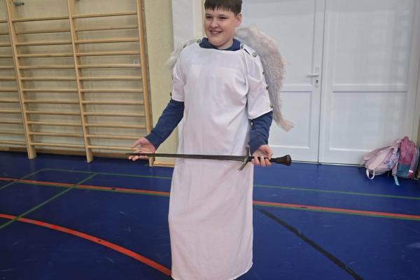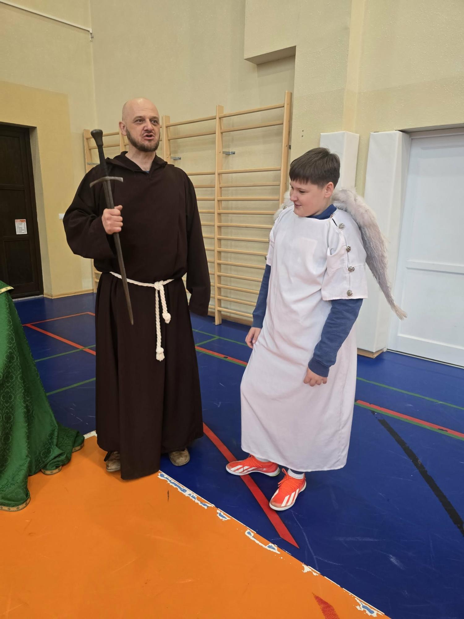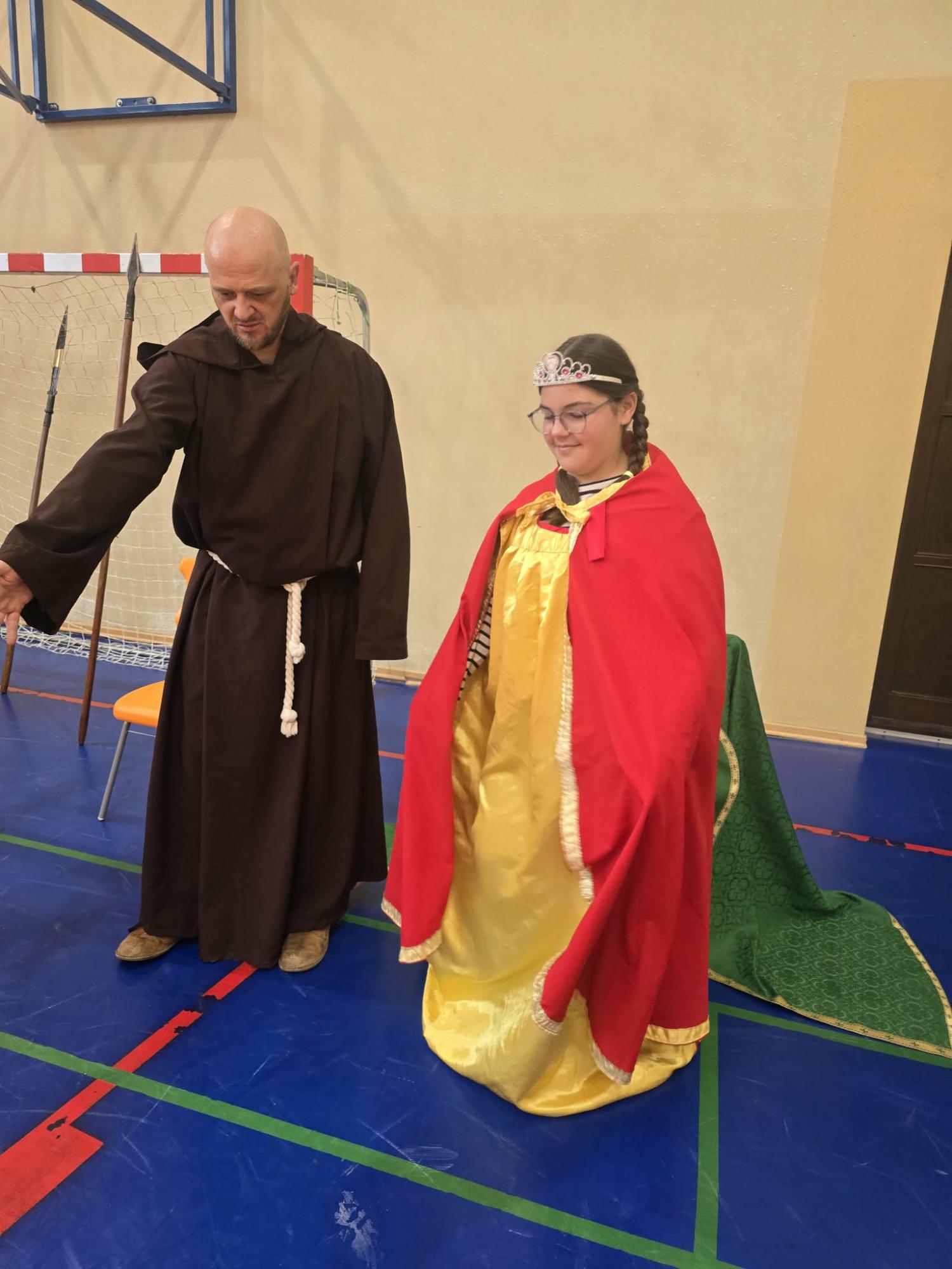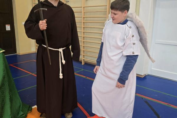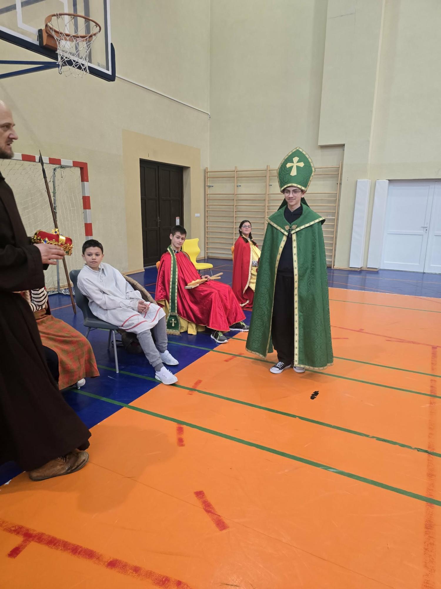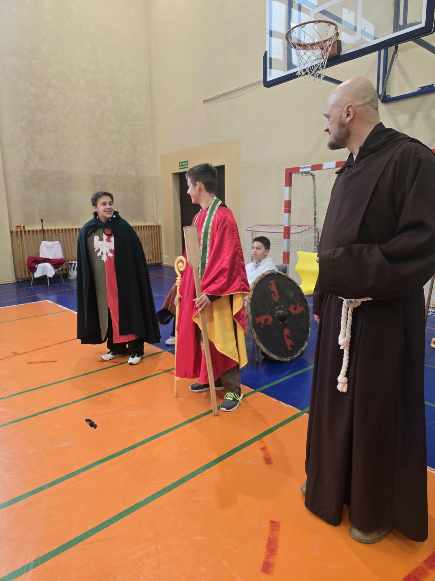 Żywa lekcja historii ukazywała najważniejsze wydarzenia z początków państwa polskiego w formie krótkich żywych scenek. Kulminacyjnymi momentami był Chrzest Mieszka I oraz koronacja Bolesława Chrobrego. Lekcja miała charakter edukacyjny, ale także angażujący - zawierała dialogi, emocje i elementy odgrywania ról. Dzięki temu uczniowie mogli lepiej zrozumieć rolę wydarzeń o doniosłym znaczeniu w historii naszego kraju. Dzisiejsza lekcja historii okazała się ciekawa, a nawet zabawna.